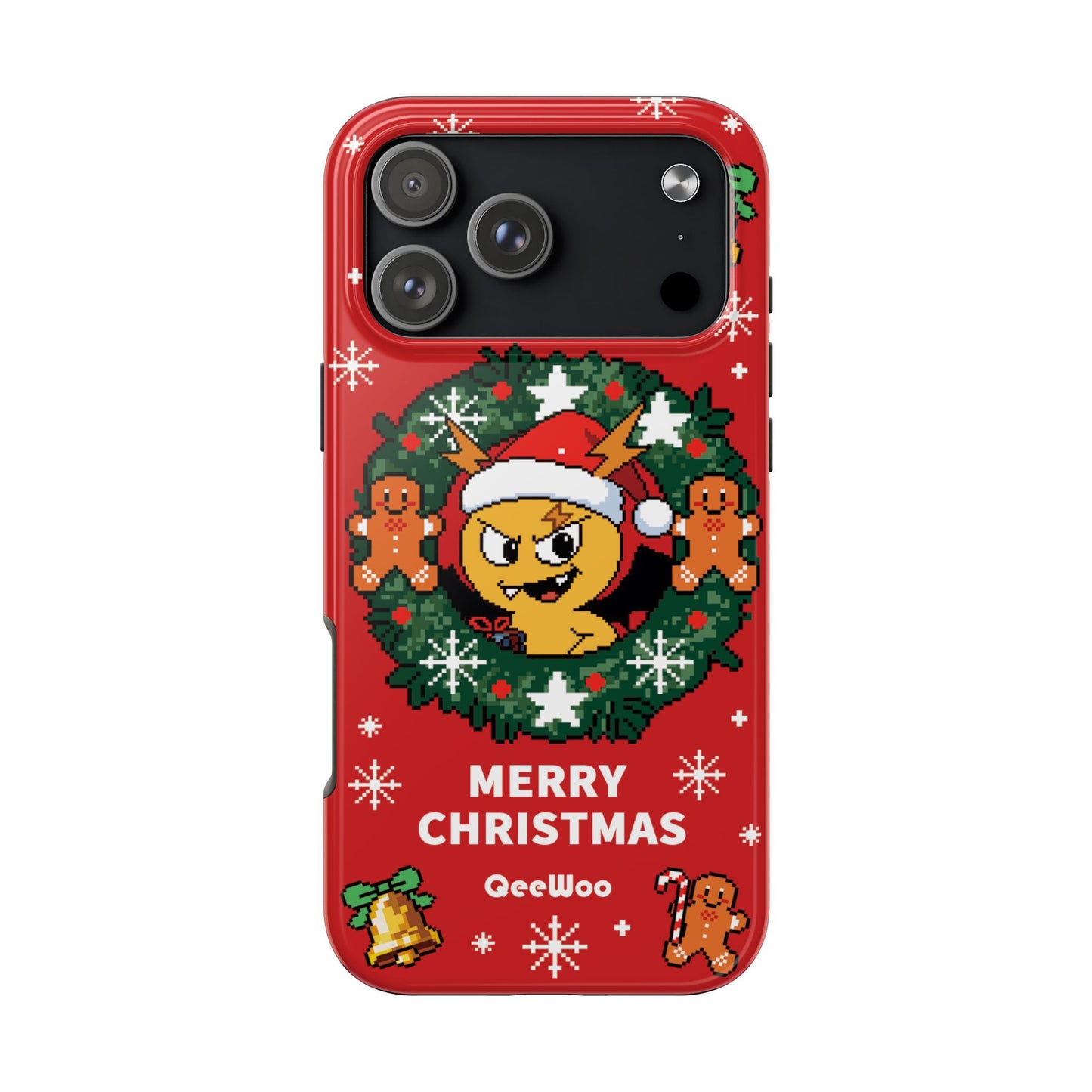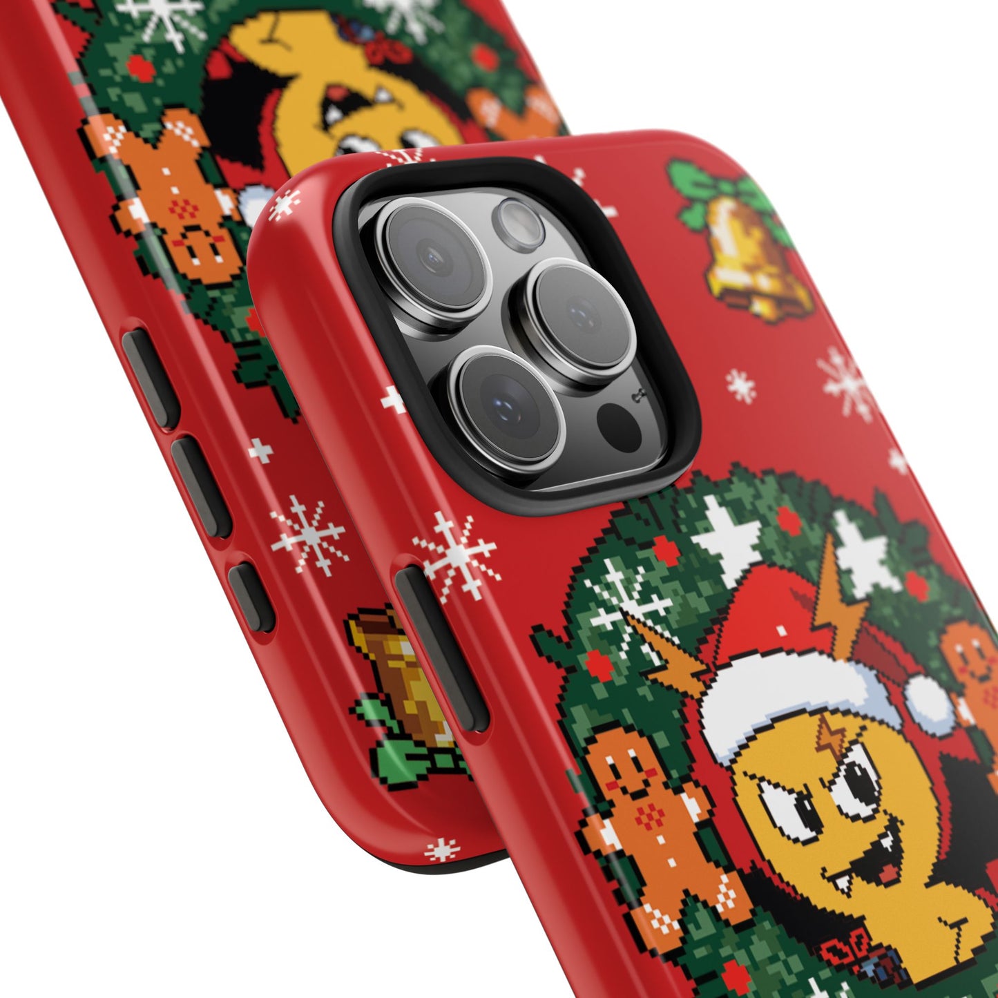 Bright, festive phone protection that adds personality to your holiday carry. This hard-shell case wraps a glossy, UV‑protected print of a cheeky holiday character tucked inside a wreath, with tiny gingerbread friends, bells and snowflakes around the edges. The two-piece construction pairs a rigid polycarbonate shell with a flexible TPU liner to absorb drops while a raised bezel keeps the screen off flat surfaces. It’s lightweight, supports wireless charging, and the durable finish resists outdoor weathering so the design stays vibrant through the season.