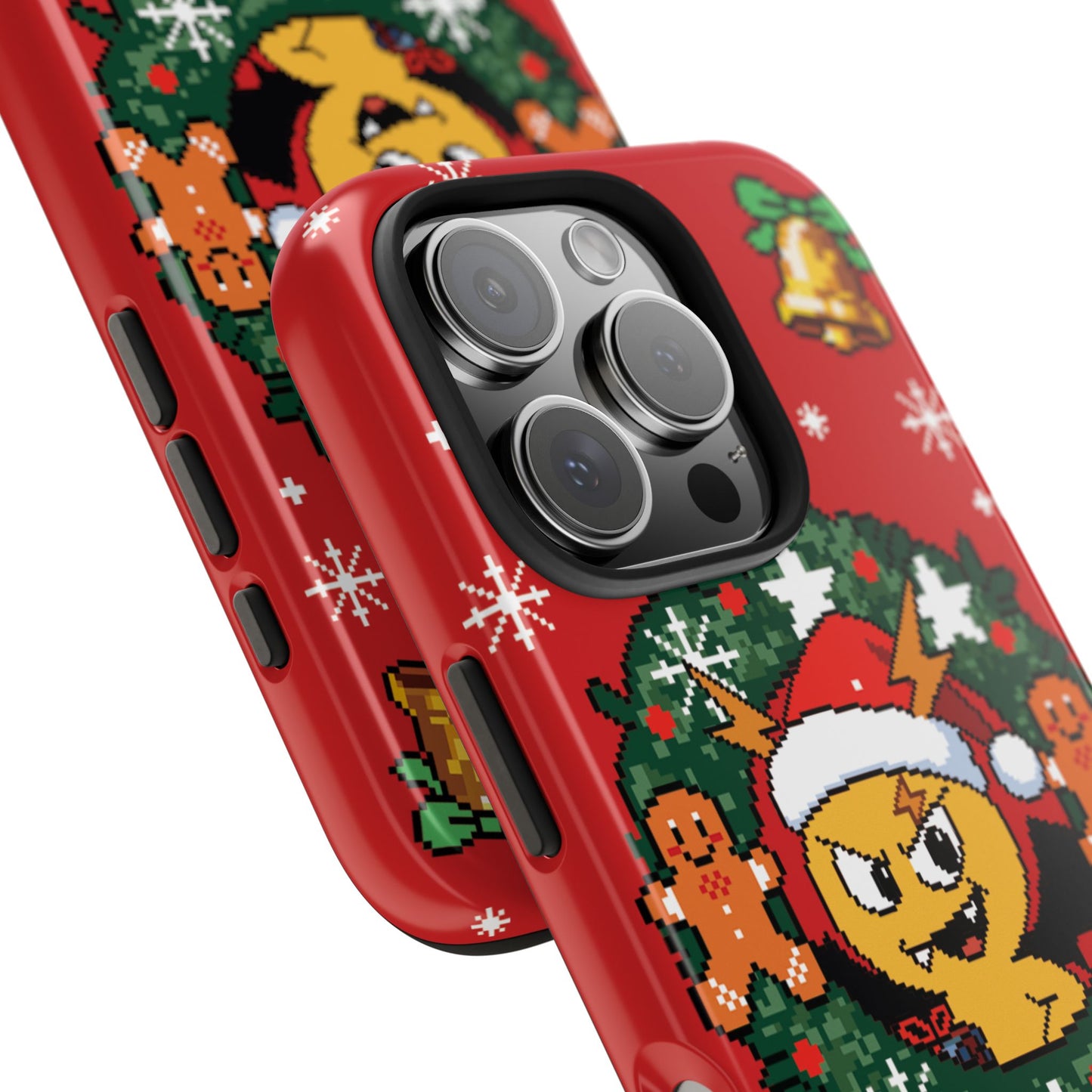 Slip it on for holiday markets, noisy family dinners, or late-night cookie baking. The playful art and saturated red background make your phone easy to spot in a crowded tote or under couch cushions. Built for everyday bumps and wintertime chaos, this case keeps your device protected while showing off a spirited, mischievous holiday vibe.