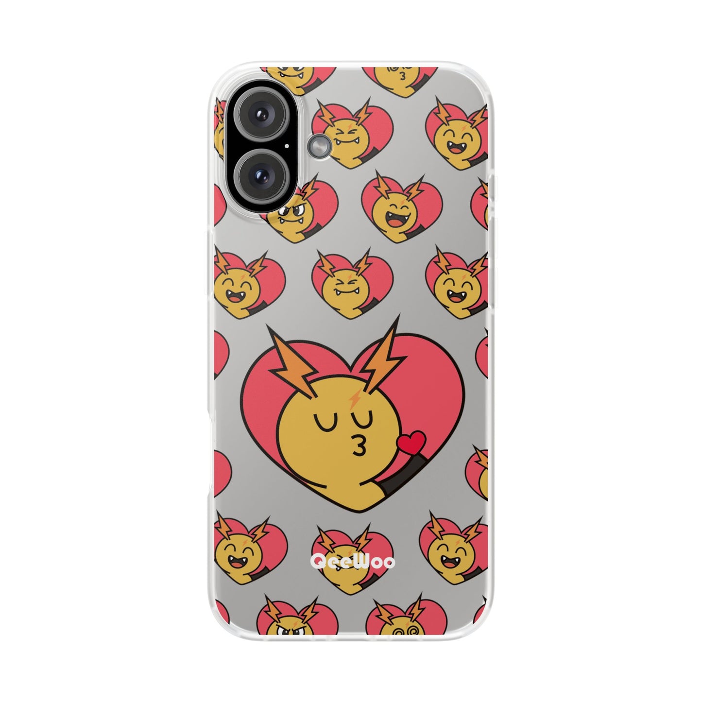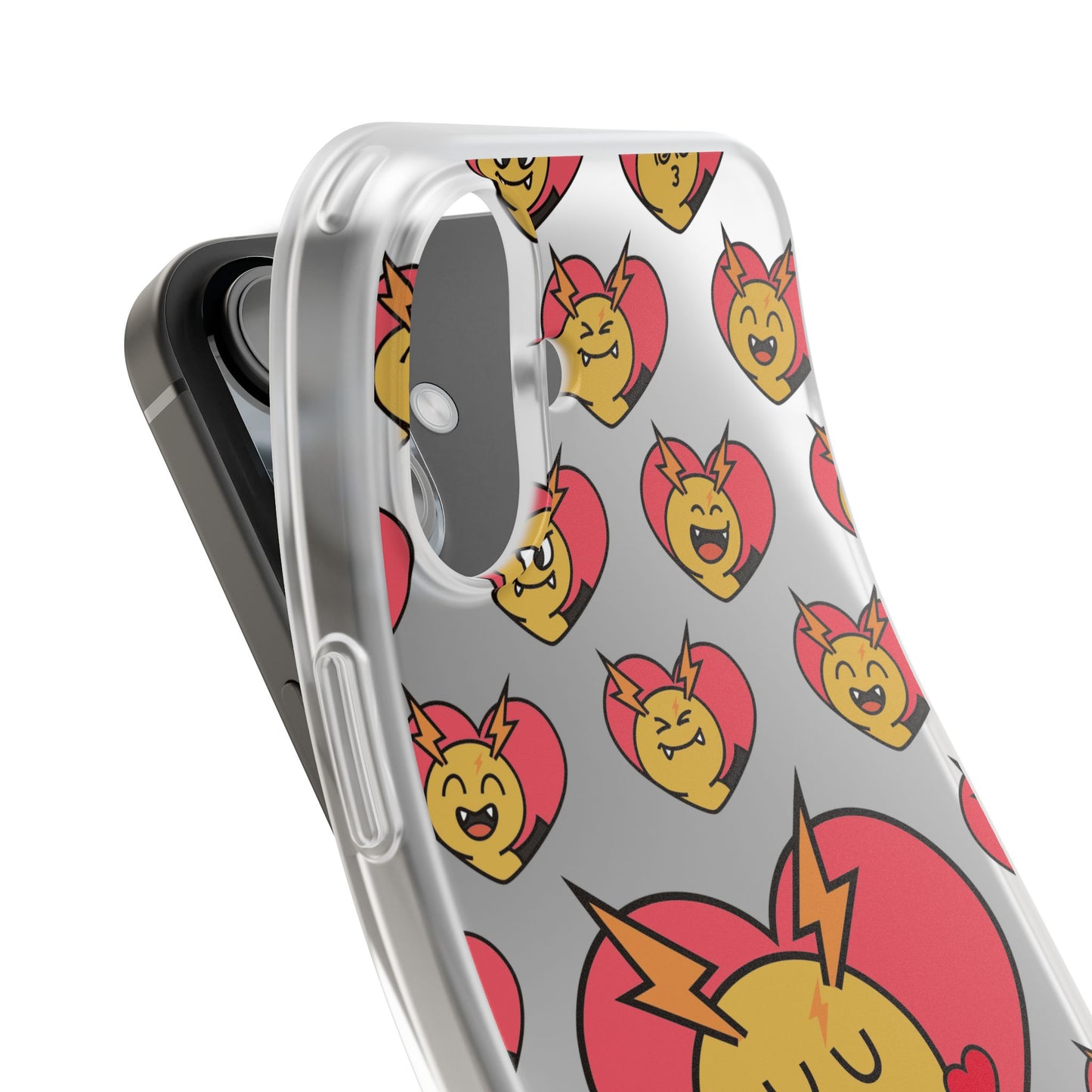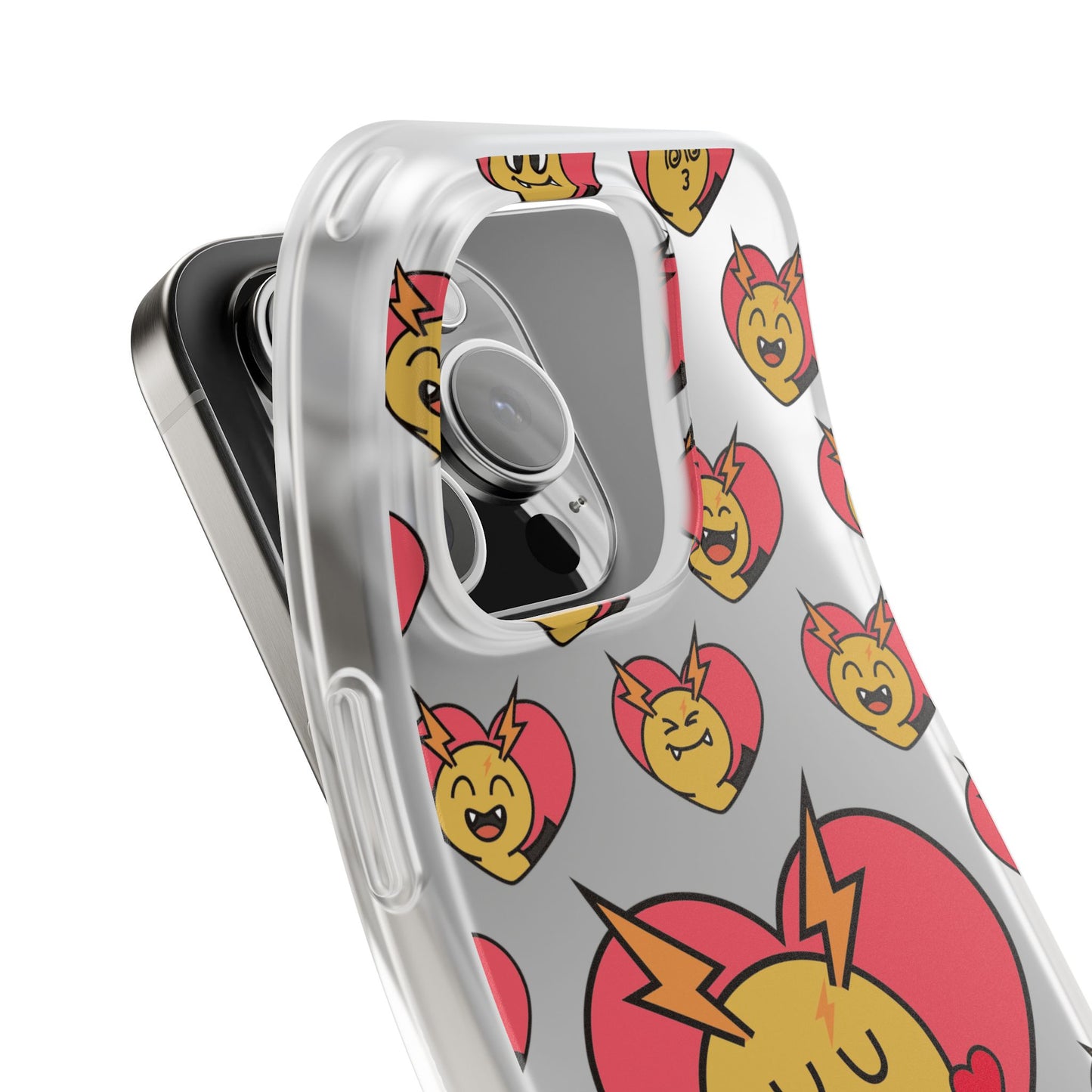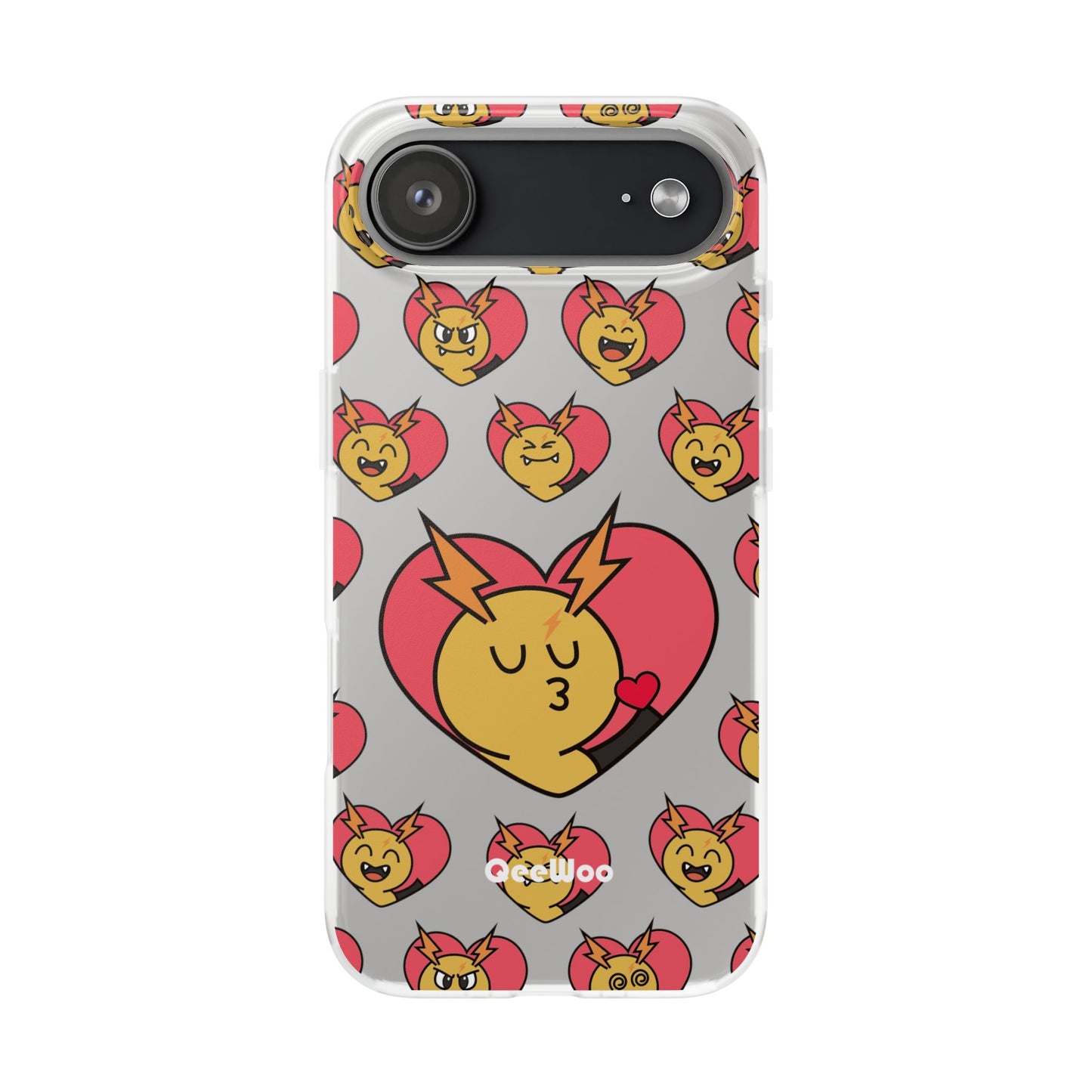 Cute Heart Emoji Phone Case — Kissing Lightning Bolt Character Clear Flexi Case