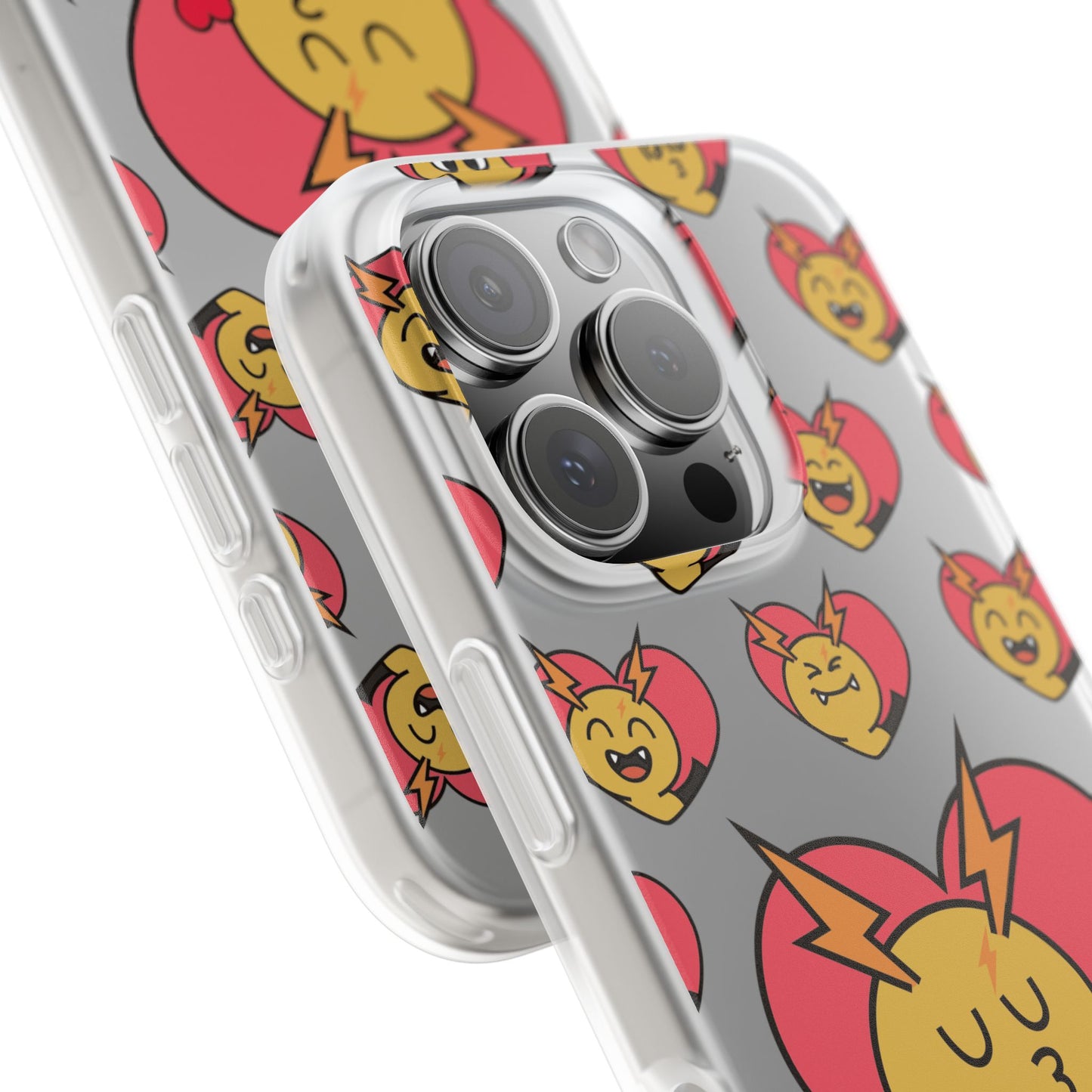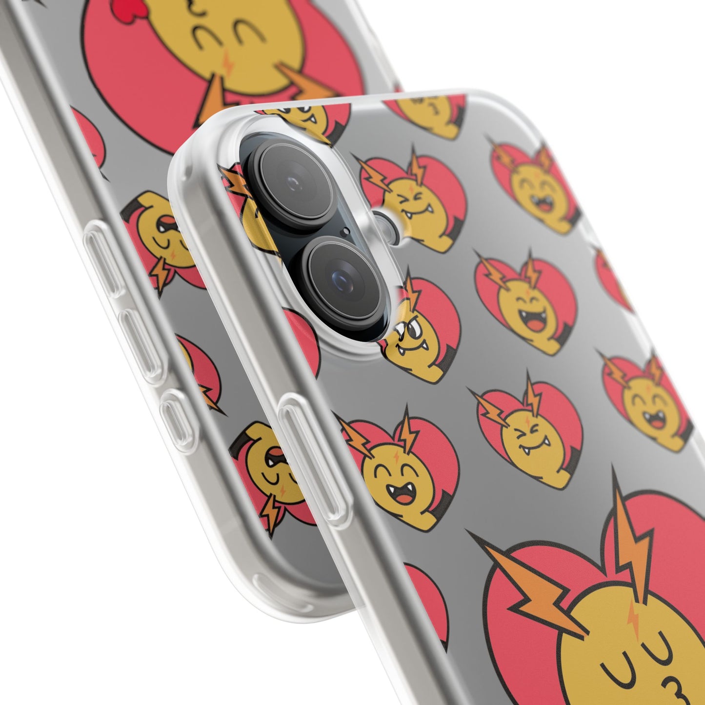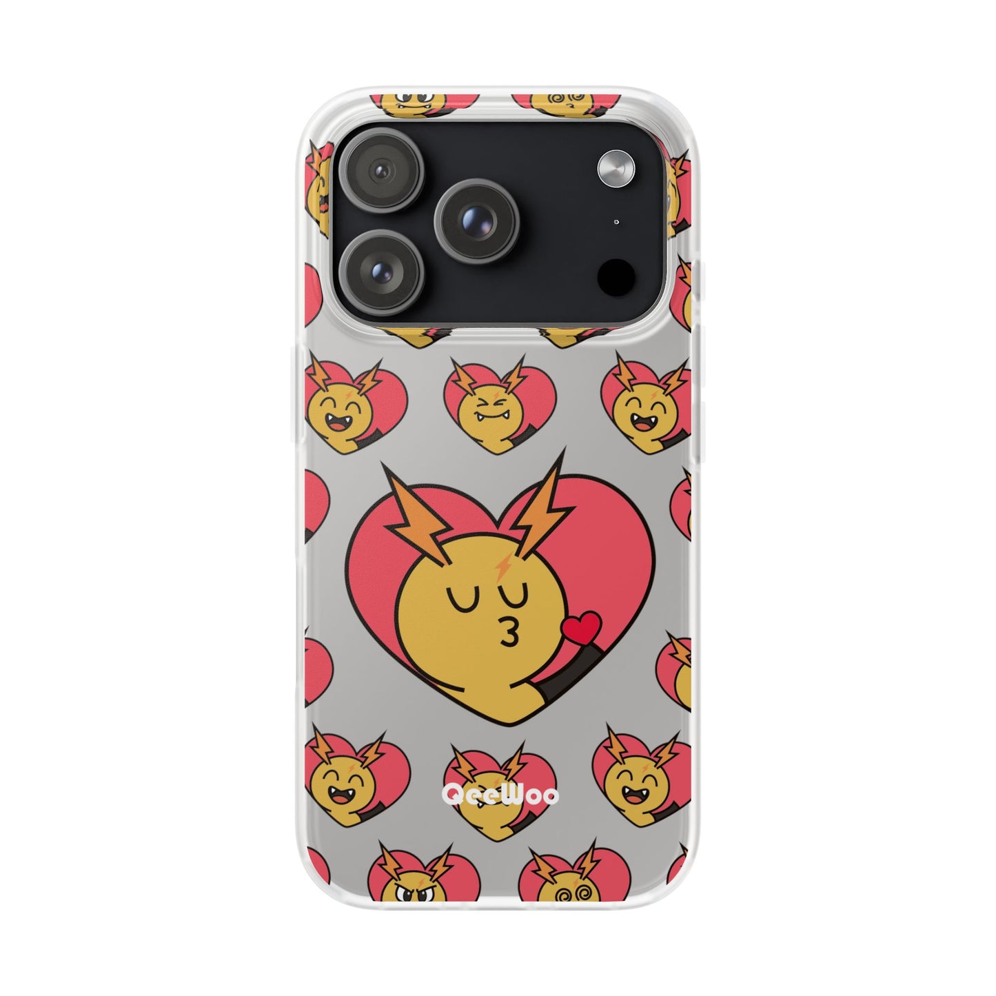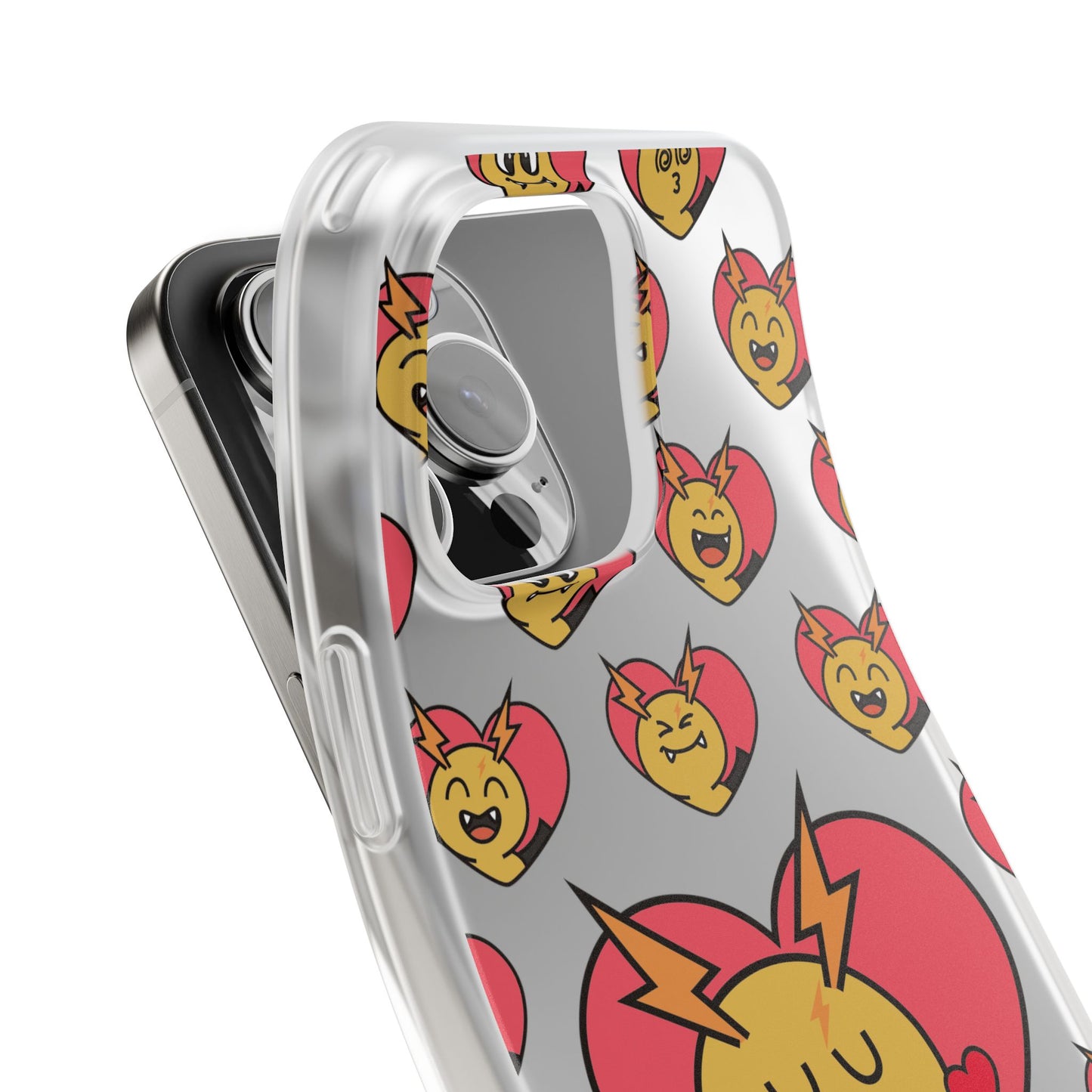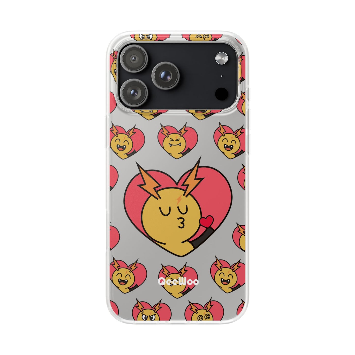Cute Heart Emoji Phone Case — Kissing Lightning Bolt Character Clear Flexi Case