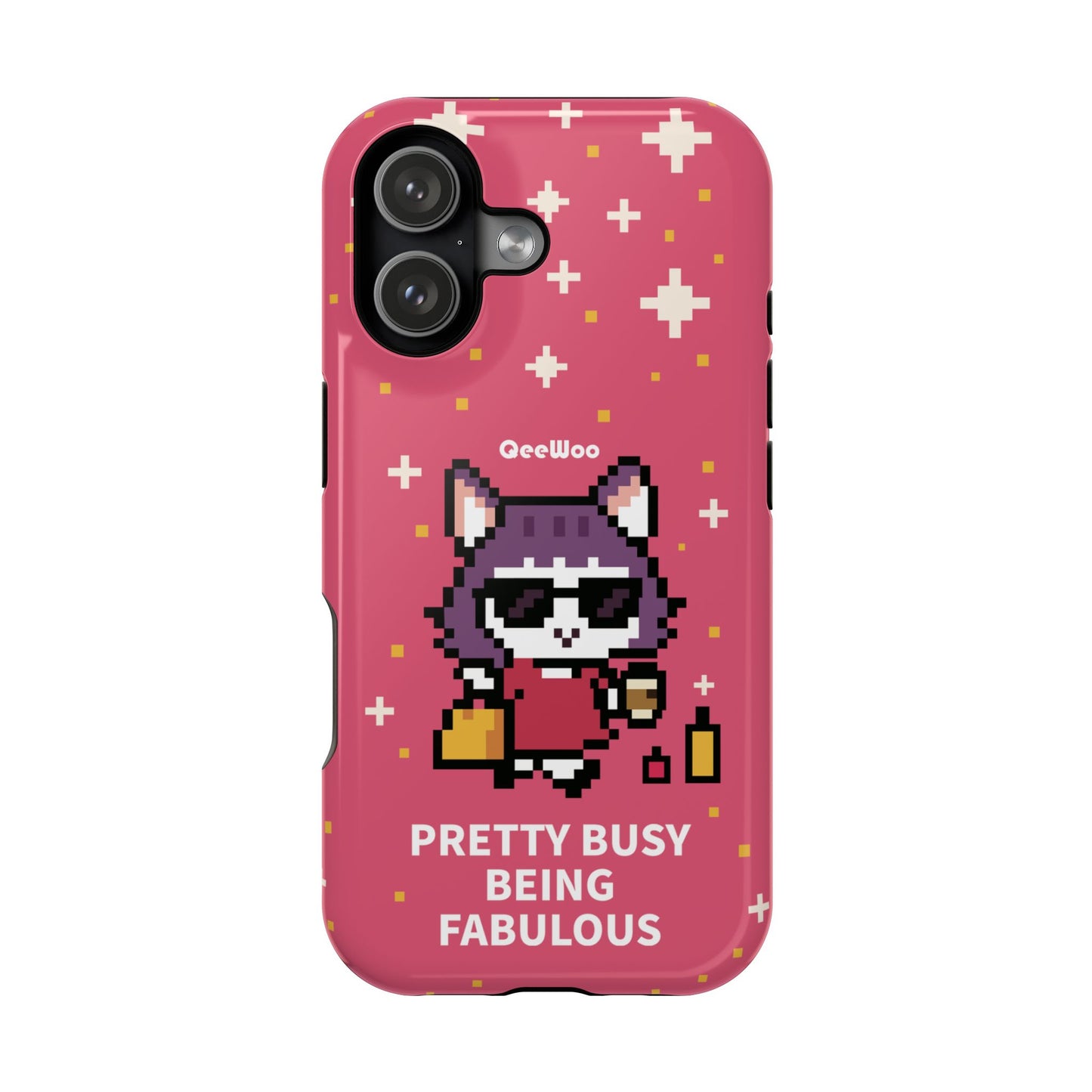 Pink Pixel Cat Phone Case — "Pretty Busy Being Fabulous" Magnetic Impact-Resistant Case