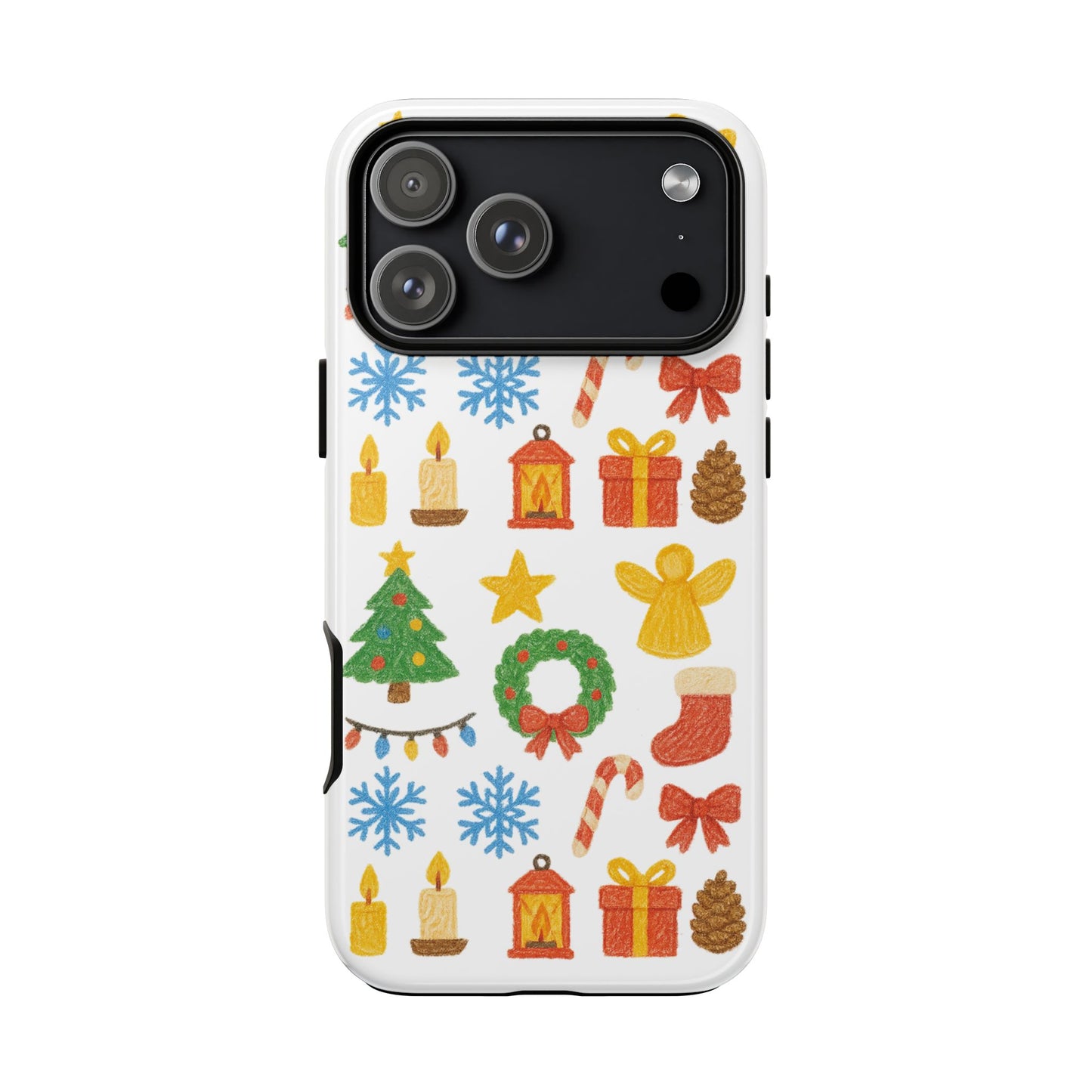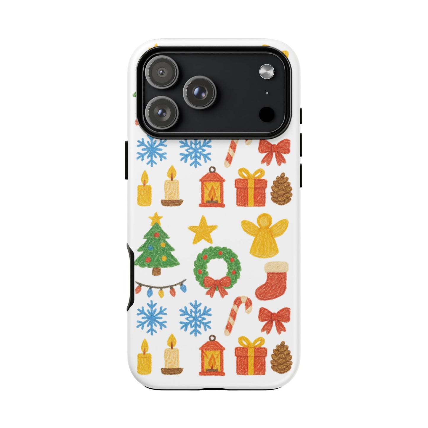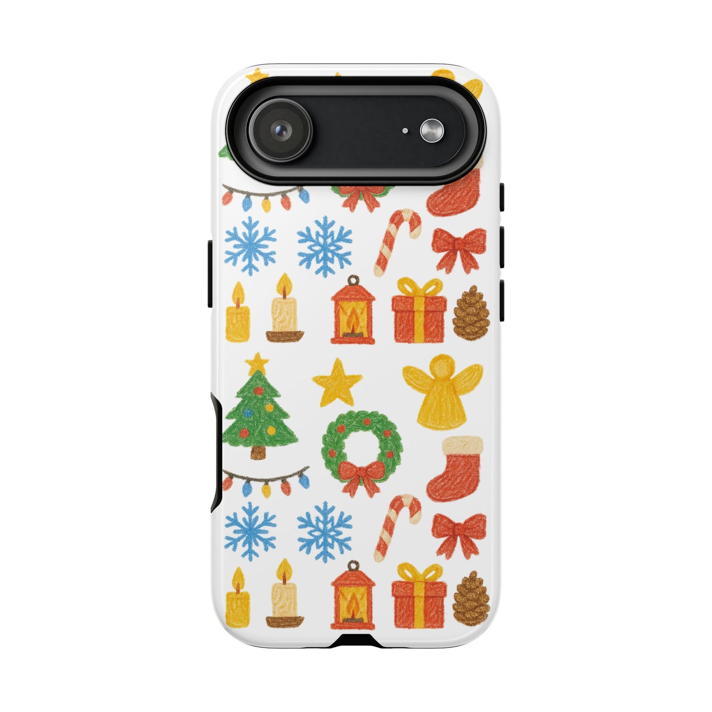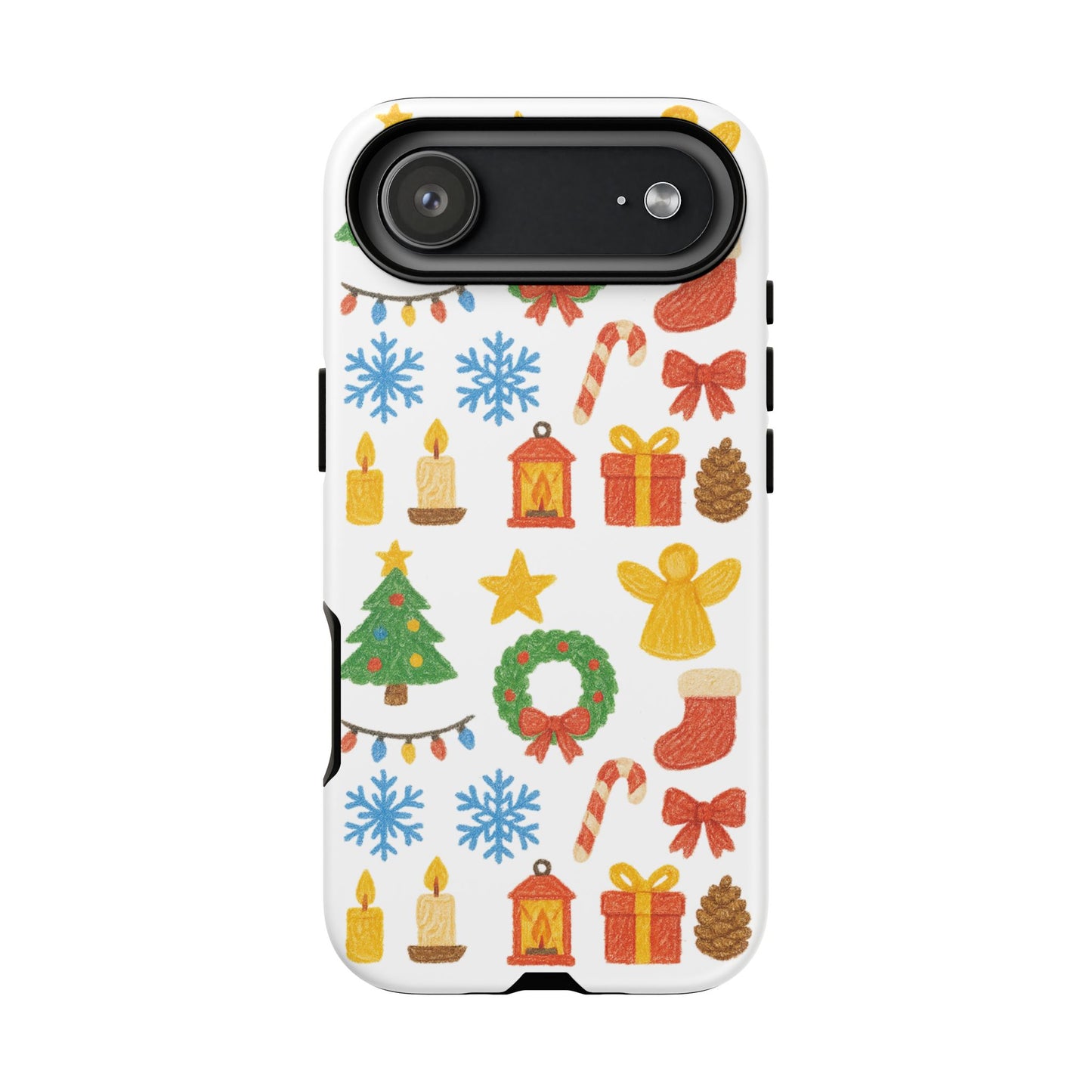 Holiday Icons Phone Case — Christmas Tree, Wreath & Stocking iPhone Protective Case