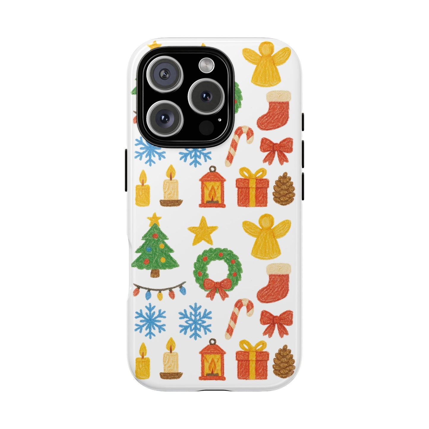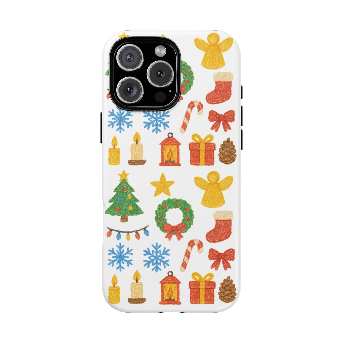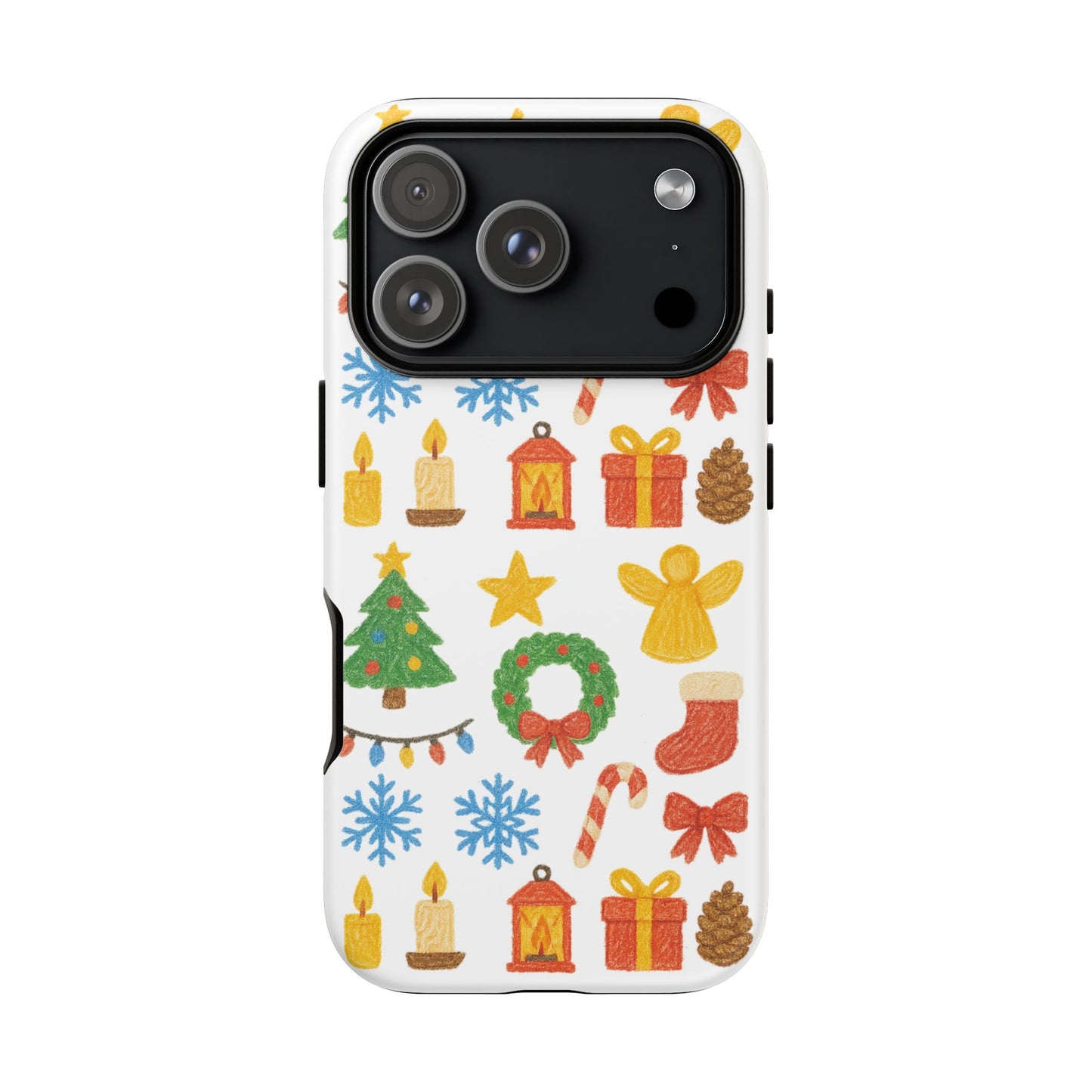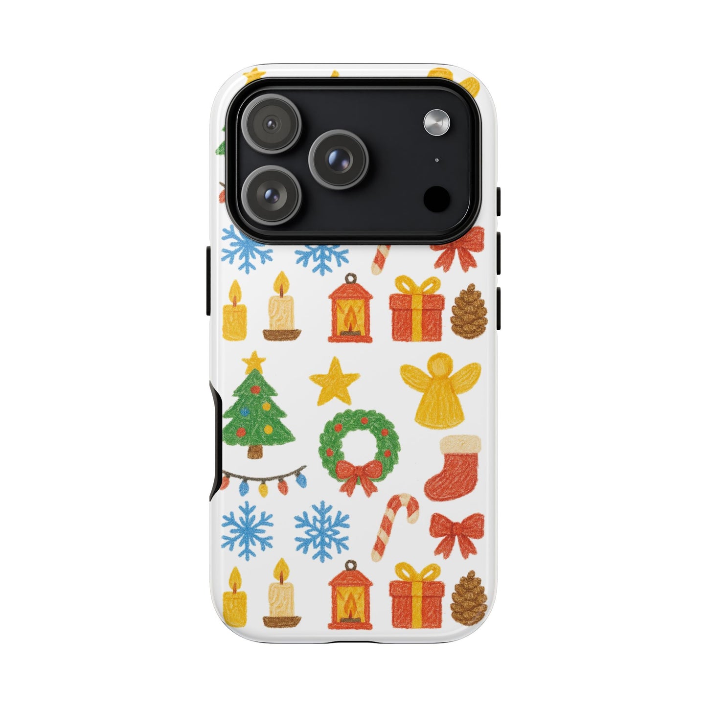 Holiday Icons Phone Case — Christmas Tree, Wreath & Stocking iPhone Protective Case