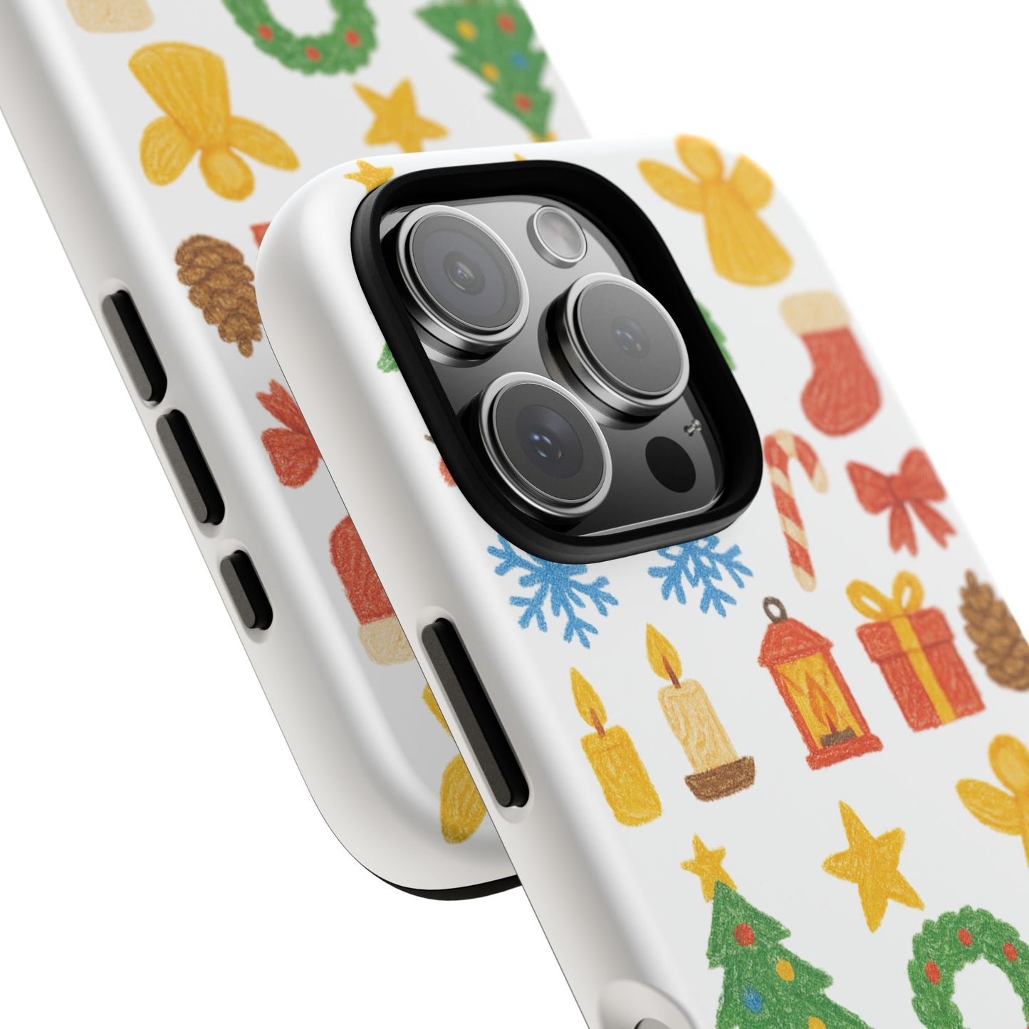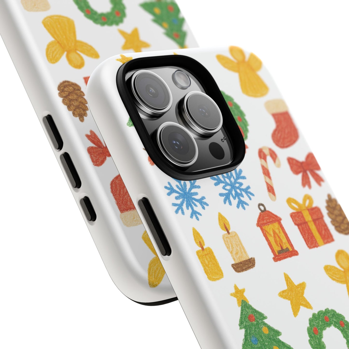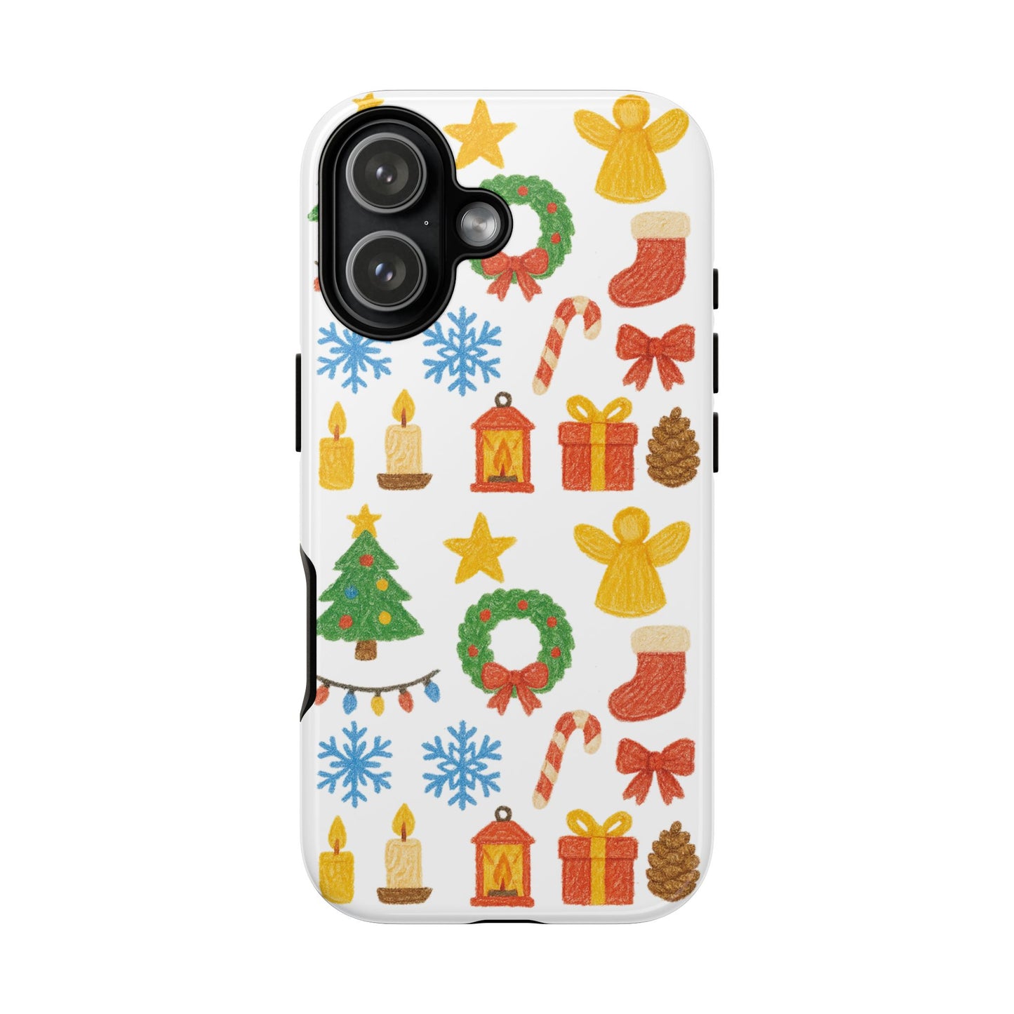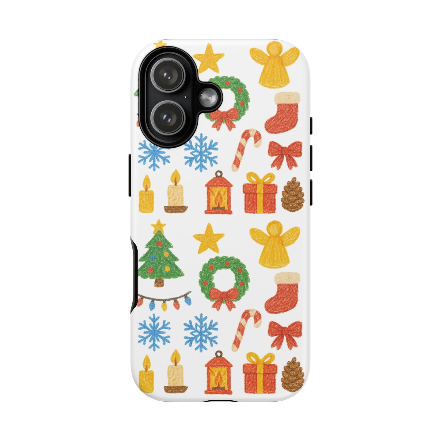 Holiday Icons Phone Case — Christmas Tree, Wreath & Stocking iPhone Protective Case
